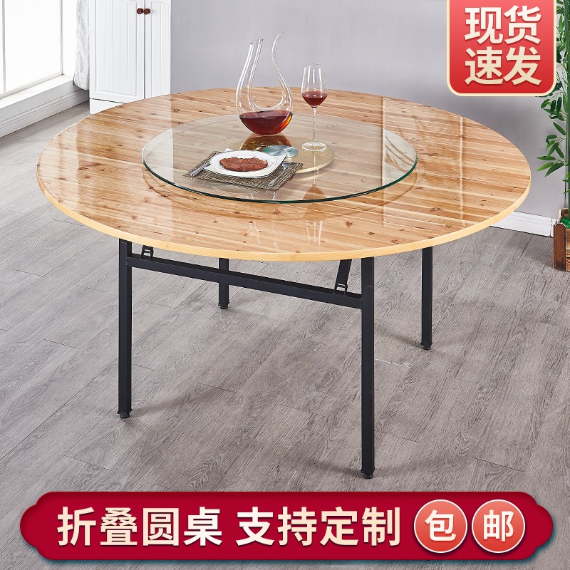 Solid Wood Large Round Table Hotel Home 10 People 15 People Cedar Wood Folded Round Table Round Table Panel Round Table-Taobao