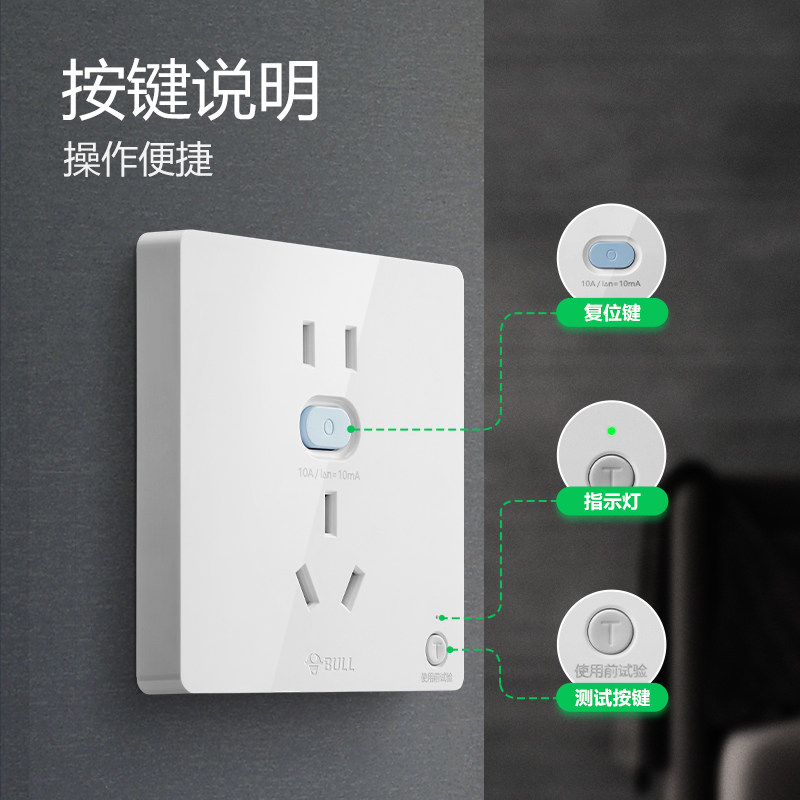 Bull leakage protection socket panel five-hole household 86 type 10a water heater high power 16a air conditioning leakage protection