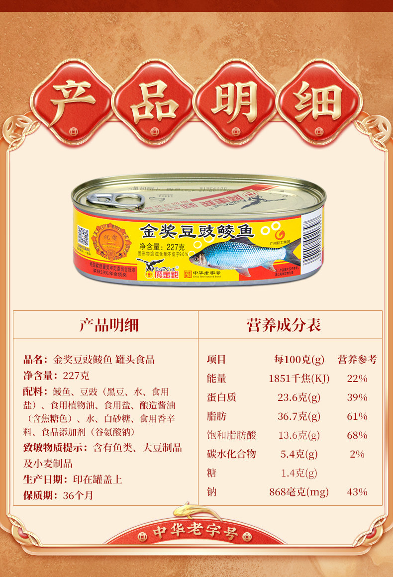 Eagle Money Bean Sauce FISH CANNED GOLD Chinese Old Character Number Ready-to-eat Canned Food Canned Bean Drum Fish 227g-Taobao