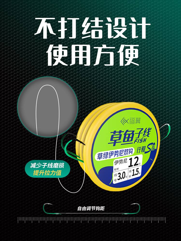Grass Fish Subline Double Hook Issini Great Things Fish Hook Silver Carp bighead tie Good finished sub-line fishing for green fish Giant wire group-Taobao