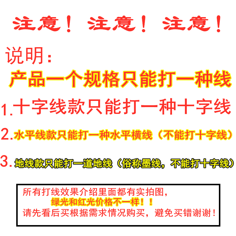 Buy a special stand alone (just take a careful shot of the stand) Ordinary version of the red light crosshairs stand free 2 batteries Upgraded version of a word green light horizontal line stand with charging set Upgraded version of the green light ten