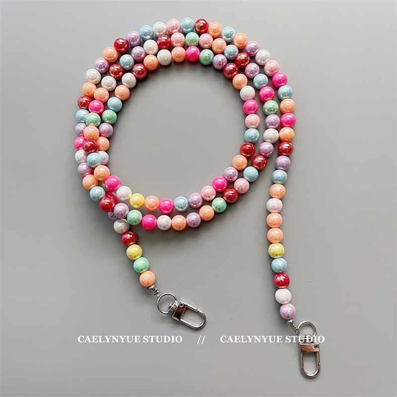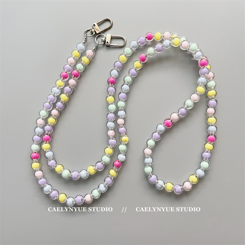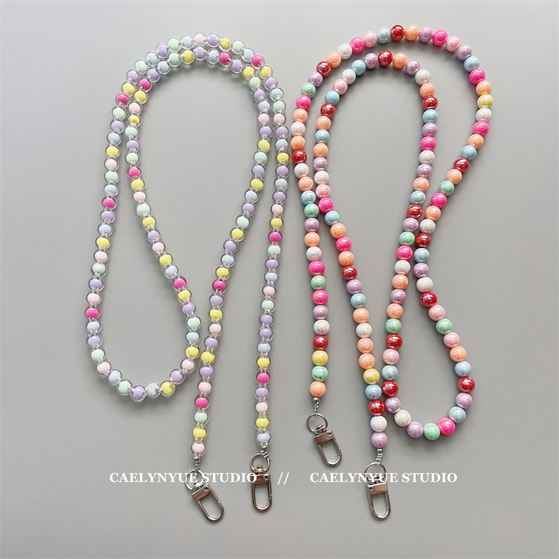 Colorful Acrylic Round Beaded Messenger Phone Chain Fashion Candy Color Neck Phone Shell Anti-Fall Bag Lanyard