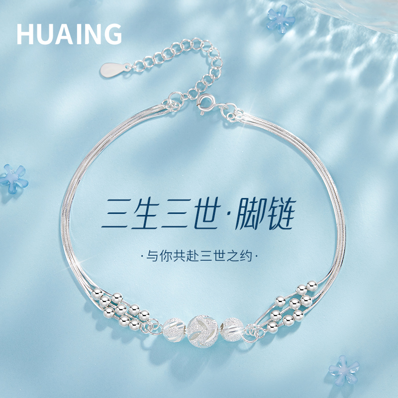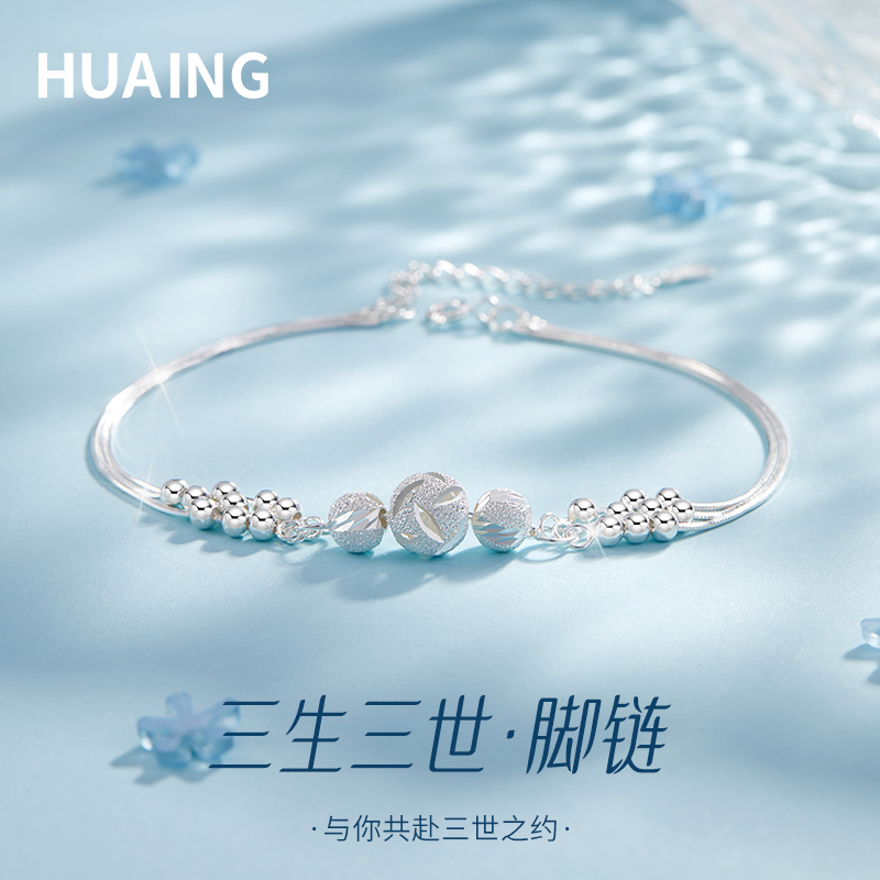 Three Sheng III Pure Silver Foot Chain Lady 2023 New Tide Transfer Pearl Foot Silver Advanced Sensation Foot Chain Cross Year Gift-Taobao