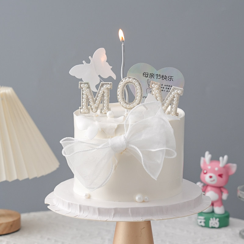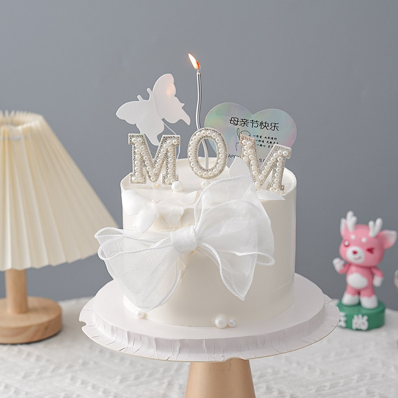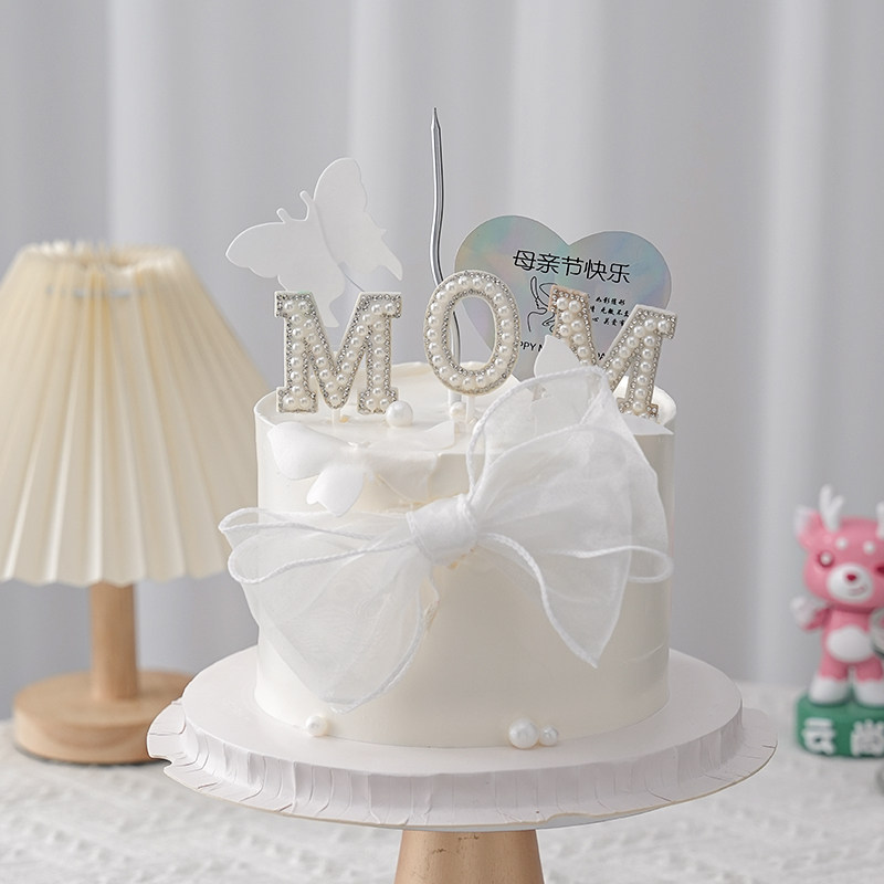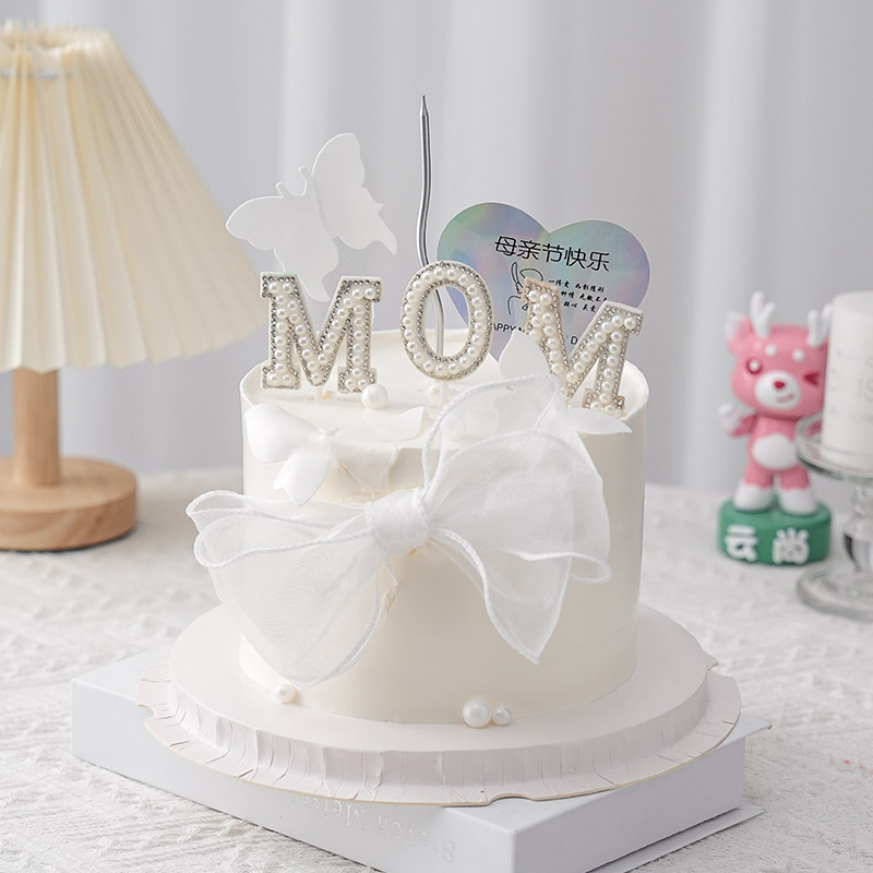 White pink rice white milk white Mother's Day cake package 5 mesh butterfly bow white 5 mesh butterfly bow pink 5 mesh butterfly bow red 2 rolls fish tail ribbon white 2