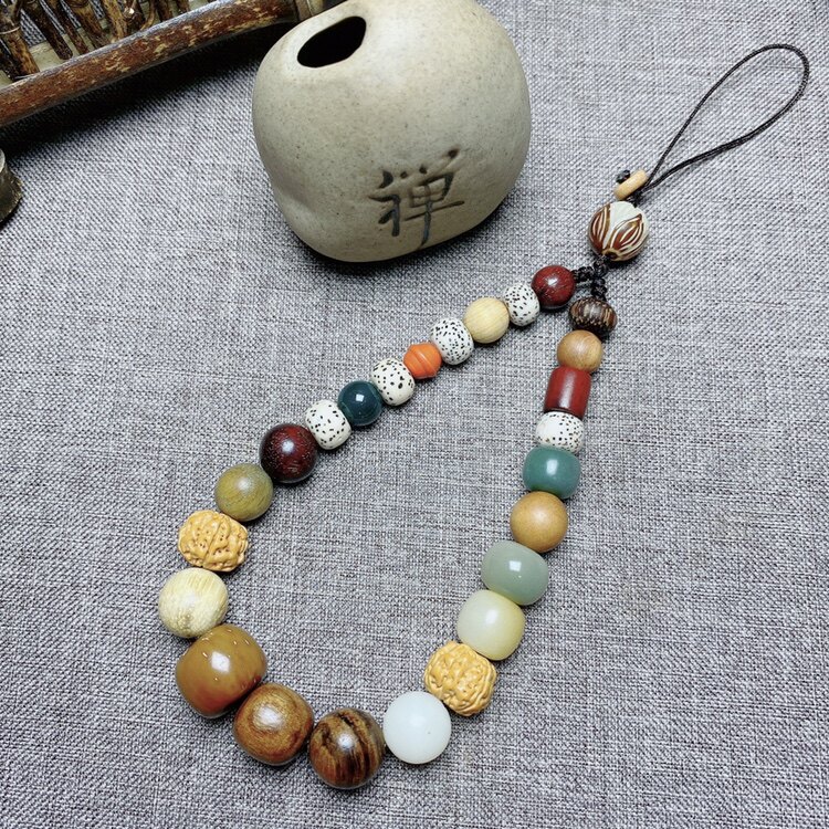 Shibazi Duobao Bodhi mobile phone chain mobile phone lanyard hanging buckle Chinese style short key chain Bodhi pendant