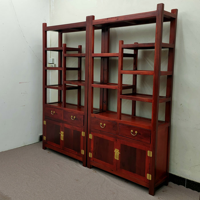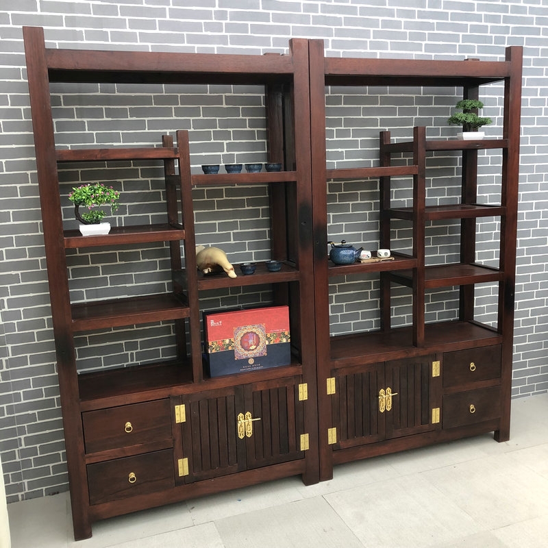 Old boat wooden antique glass bookshelf tea shelf solid wood bao ca antique frame segment display frame