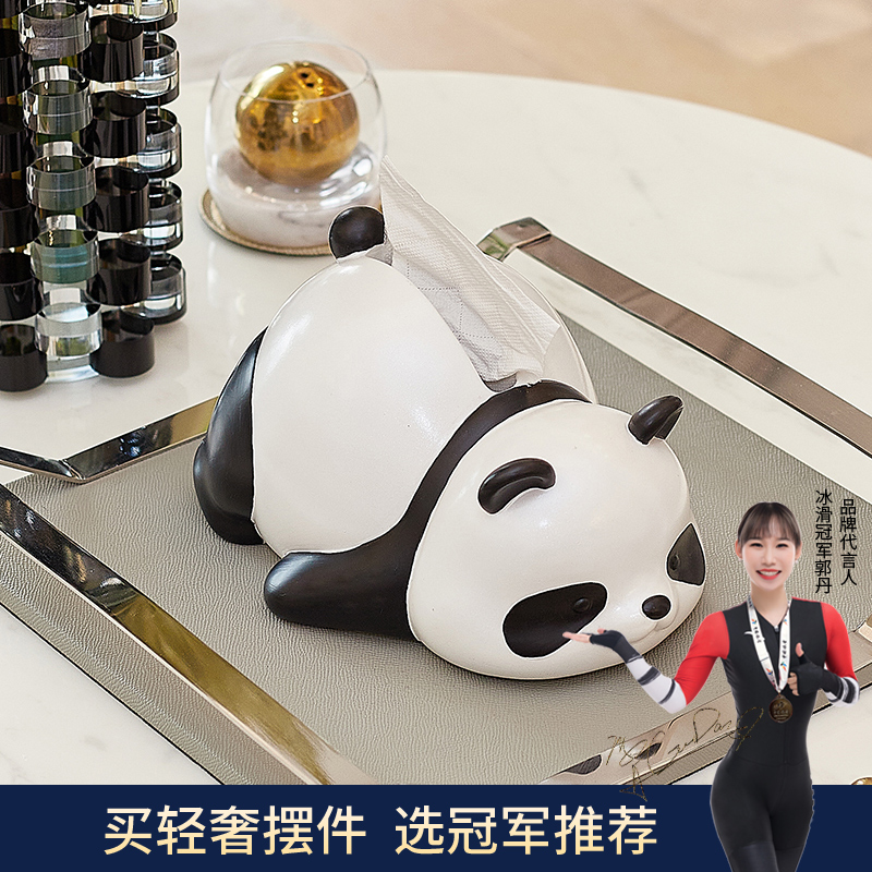 Panda Paper Towel Box Pendulum piece Living room tea table Desktop High-end Creativity Cute High Face Value Pumping Cardboard Boxes Home Ornament-Taobao