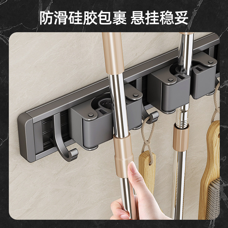 Gun gray fashion mop holder 30cm-2 cards 3 hooks Gun gray fashion mop holder 40cm-3 cards 4 hooks Gun gray fashion mop holder 50cm-4 cards 5 hooks Gun gray fashion mop