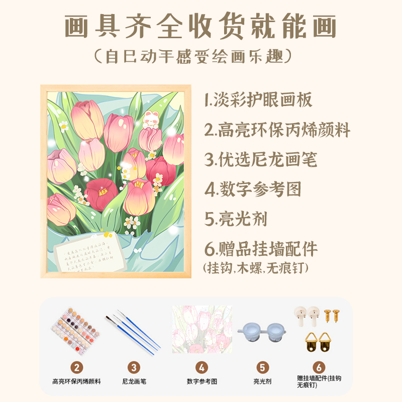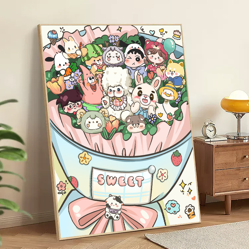 Cute Darling Cartoon Bouquet 0 Base Diy Digital Oil Painting Hand Painted Oil Color Painted Propylene Fill Decompression Home Decoration Painting-Taobao