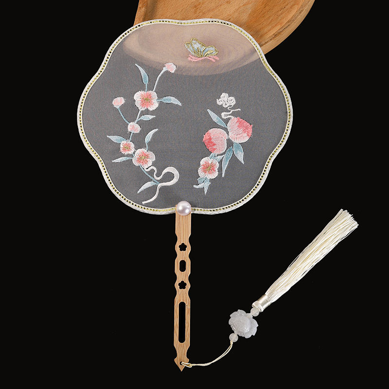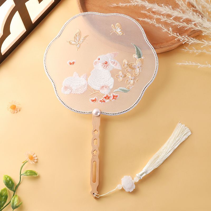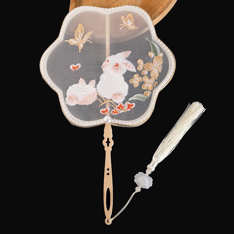 Peach six petals with pearl wrappers with pearl bags and pearl bags with small pearl willow branches white mill rabbits six petals with pearl bag white willow grain black handle
