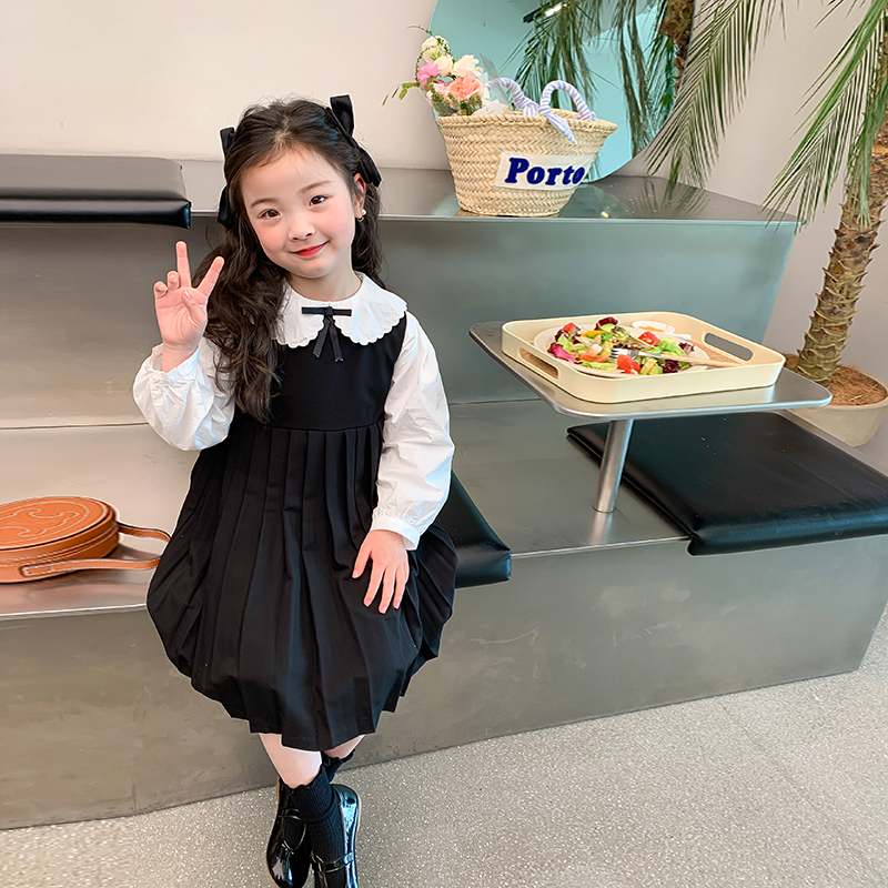 Han Fan 2023 Spring Dress New Girls College Fengwhite Shirt Dress JK Set Children Han Edition Gas Vest Connection