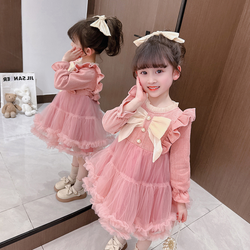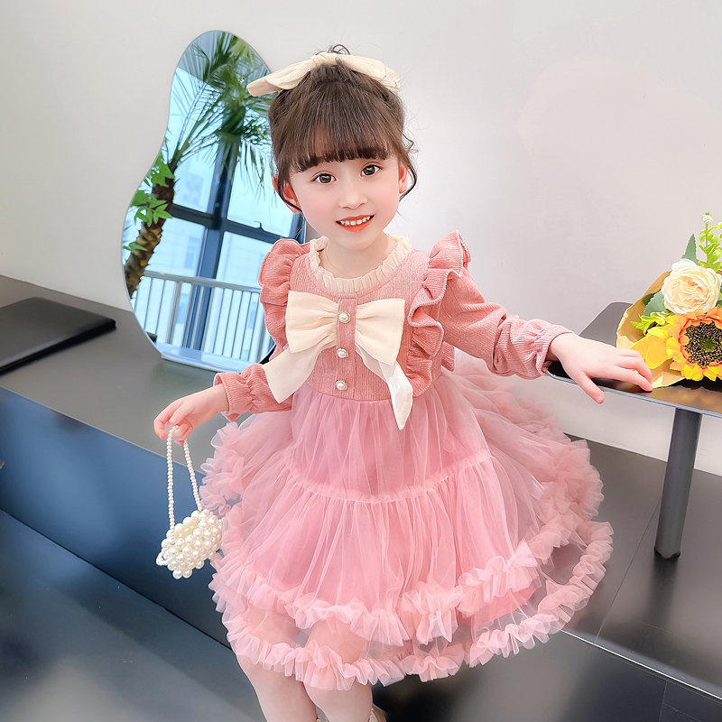 Han Fan Girl Yellow Princess Wears Long sleeve Spring Fall Dress Baby Lace Fragrance Small Fragrance Dress Spring