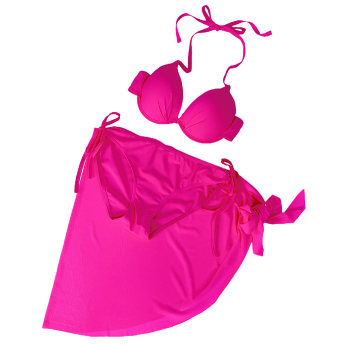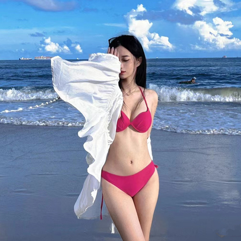 European and American wind bathing suits women's beach holiday ins bikini pink size breasts steel toodetto gather three-point style bubble spa-Taobao