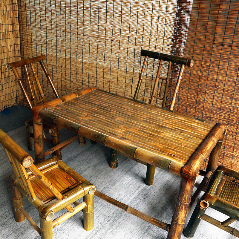 Retro courtyard bamboo table and chair combination bamboo chair old-fashioned bamboo table outdoor square table tea table tea table bamboo furniture