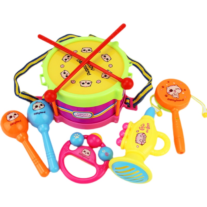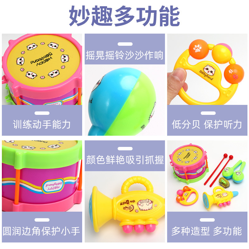 Children's instrument Suzuki sets the baby to appease the rattle drum music horn toy infant knocks percussion drum suit-Taobao
