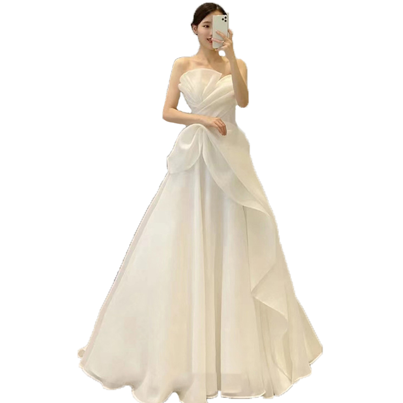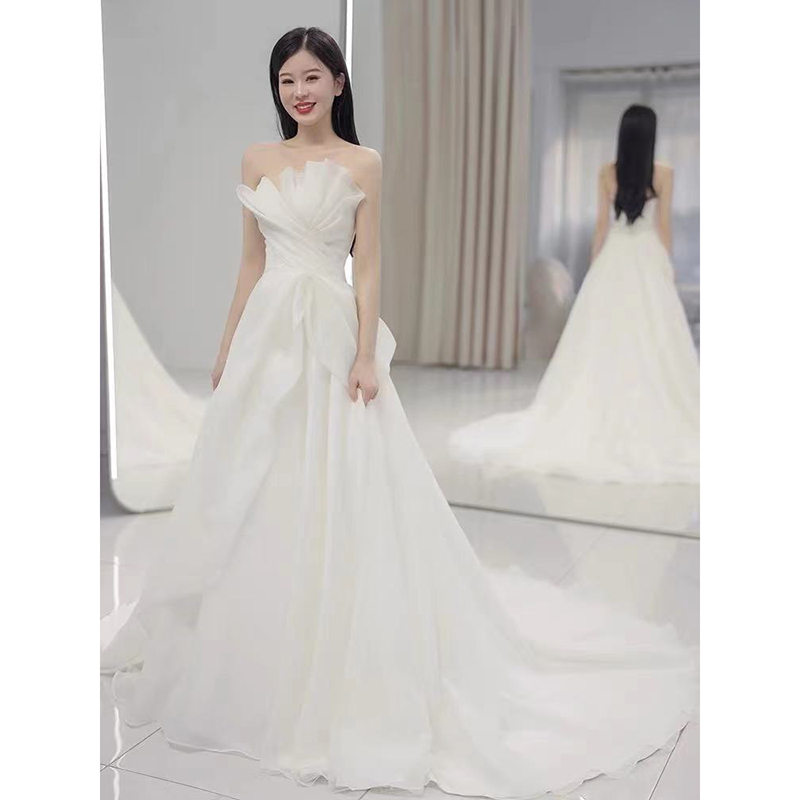 Light wedding dress 2024 new style bridal tube top simple going out gauze slimming main gauze travel photo welcome gauze with small tail to the floor