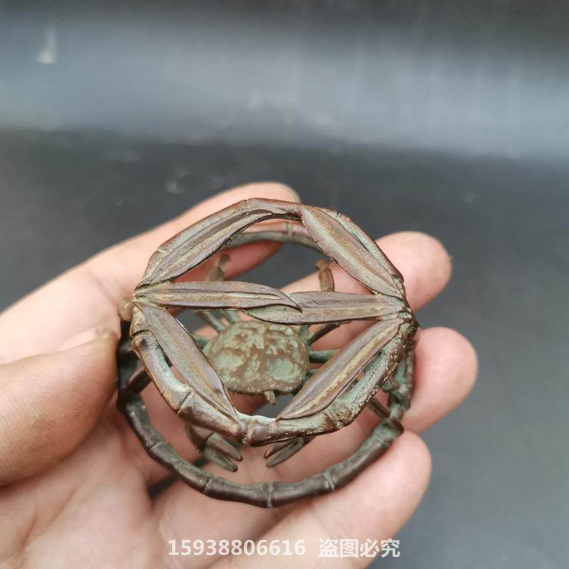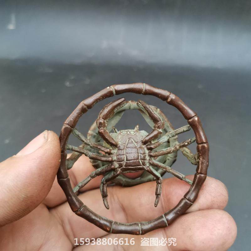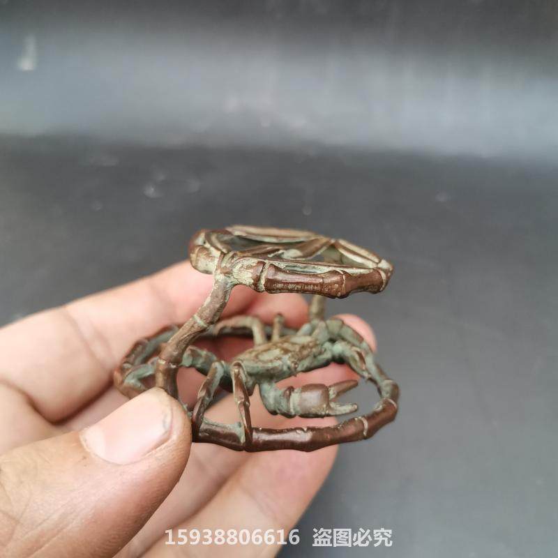 Antique Ancient Play Bronze Ware Antique Collection Alloy Imitation Pure Copper Crab Cover Retro Red Copper Leather Shell Desktop Small Pendulum-Taobao