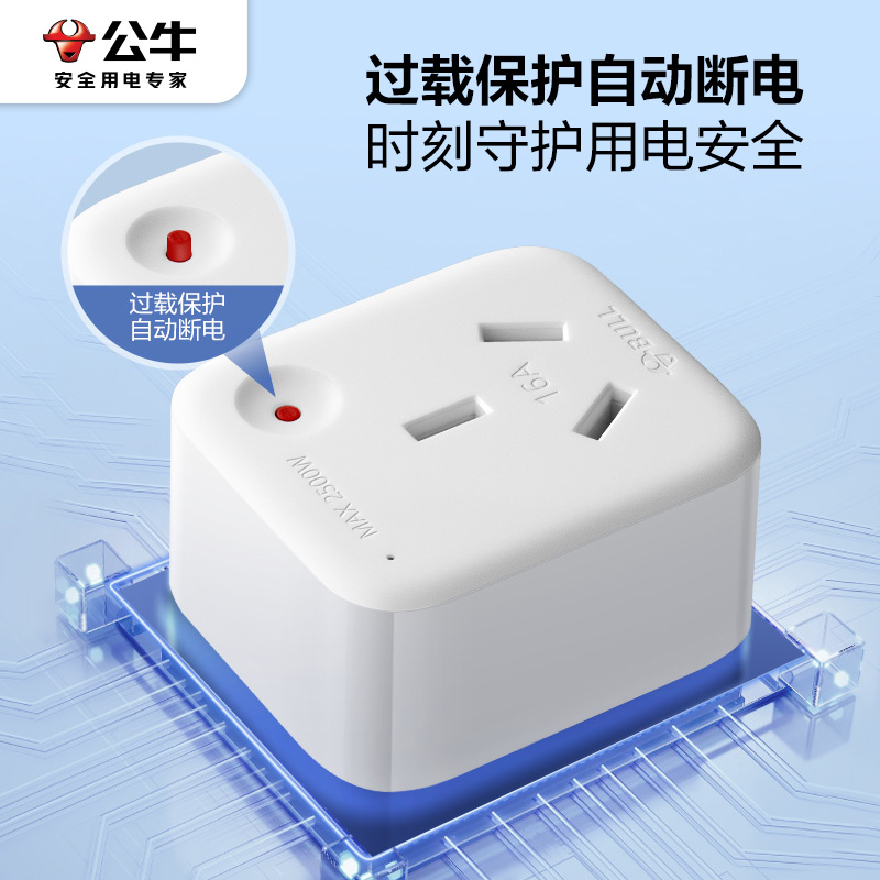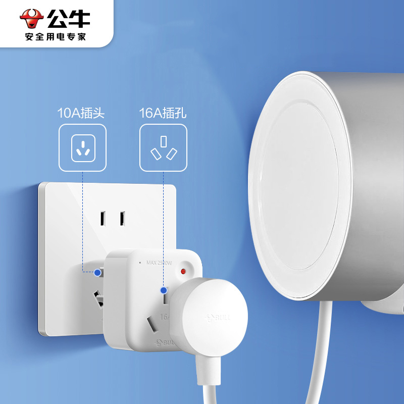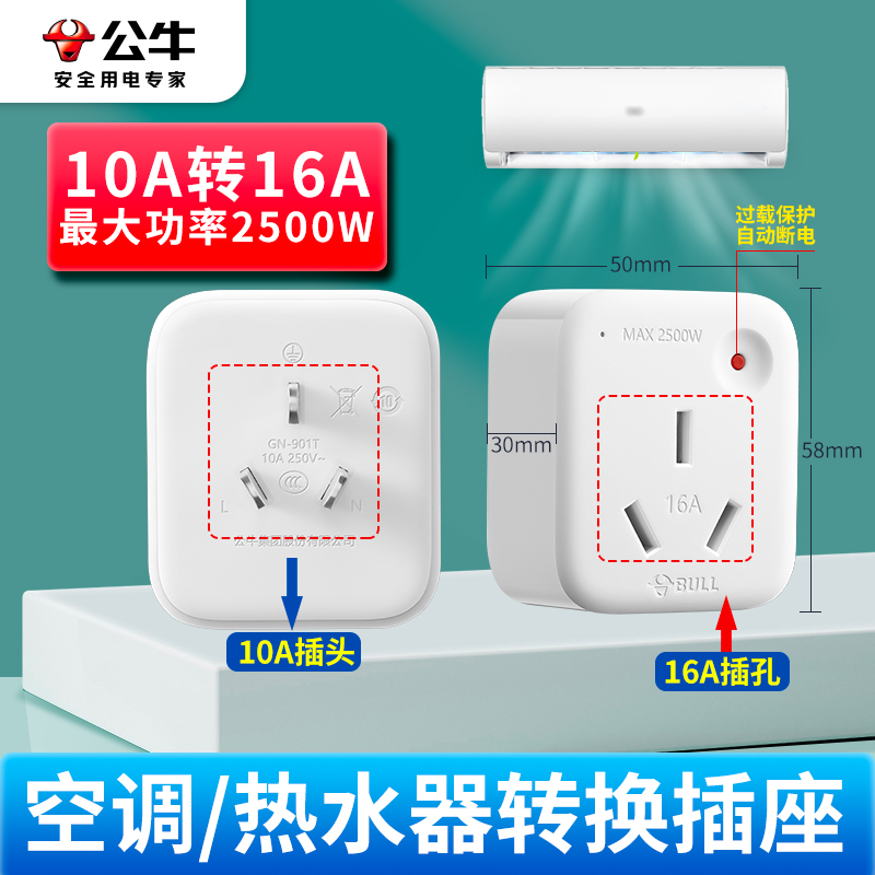 Bull 10a Turns 16a Conversion Plug Seat High Power Water Heater Air-conditioning Electrical Socket Converter Overload Protection-Taobao