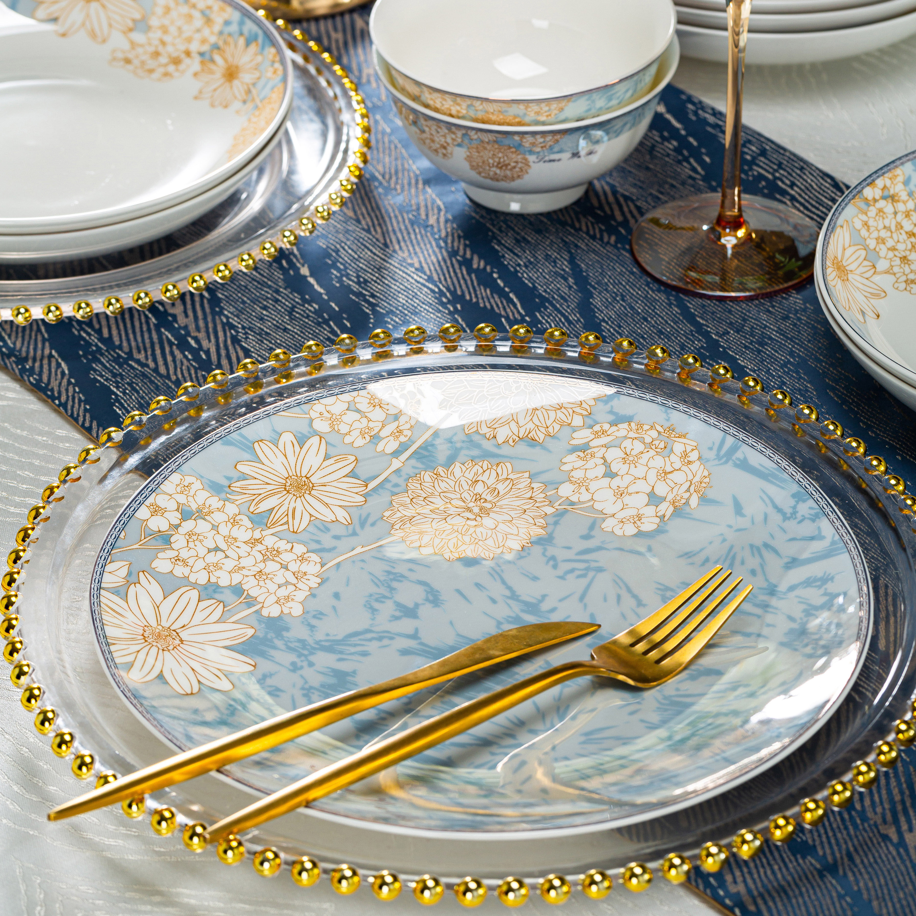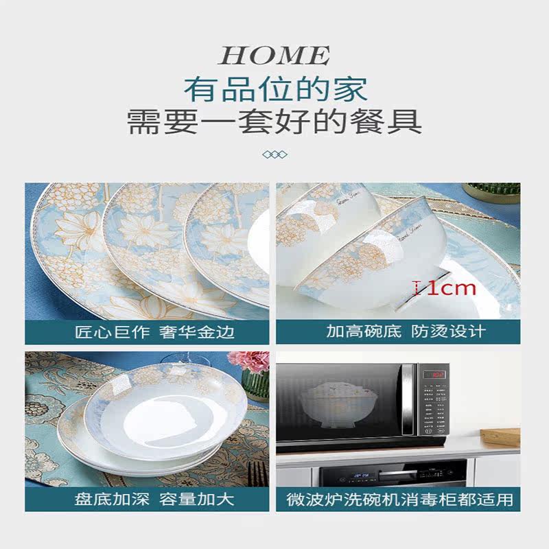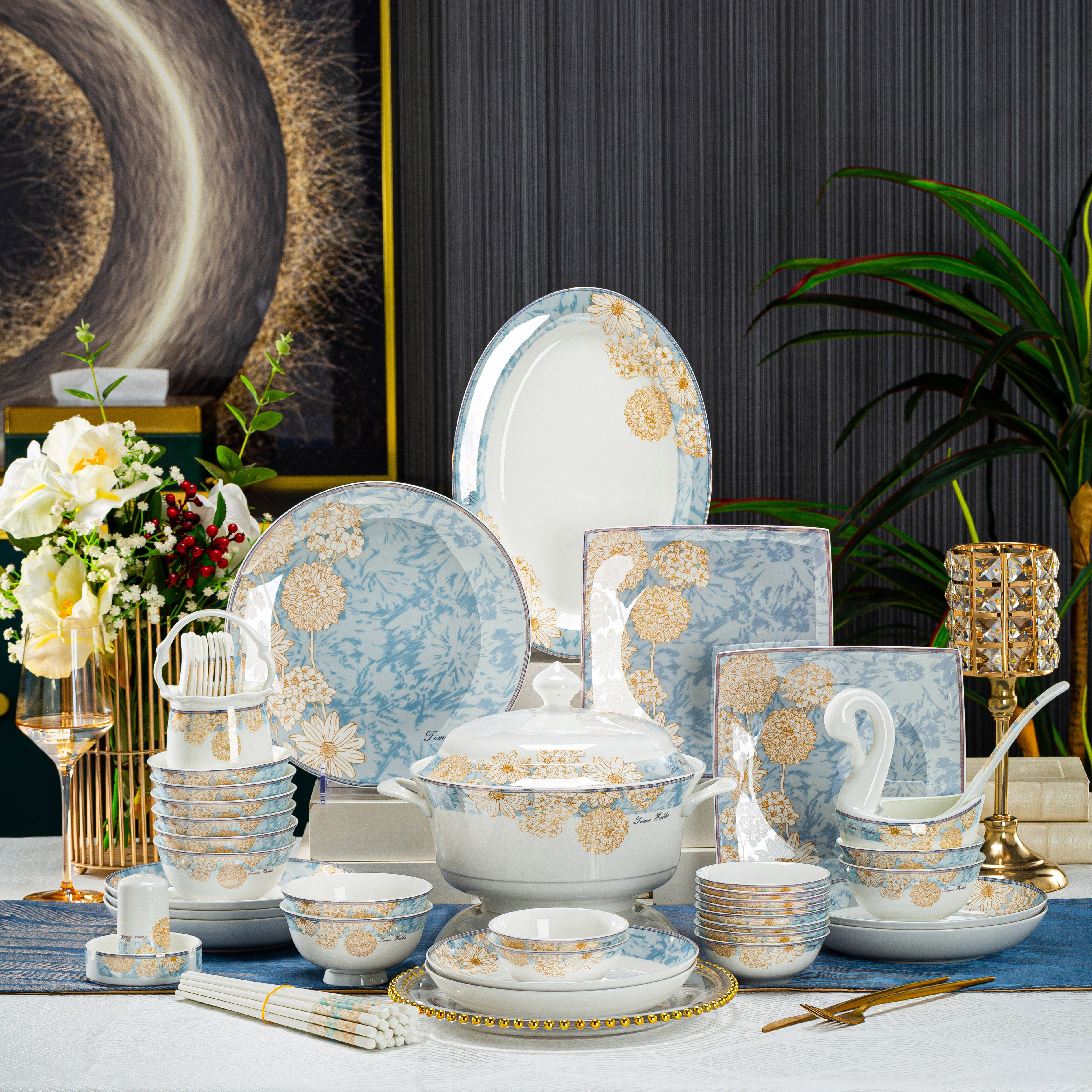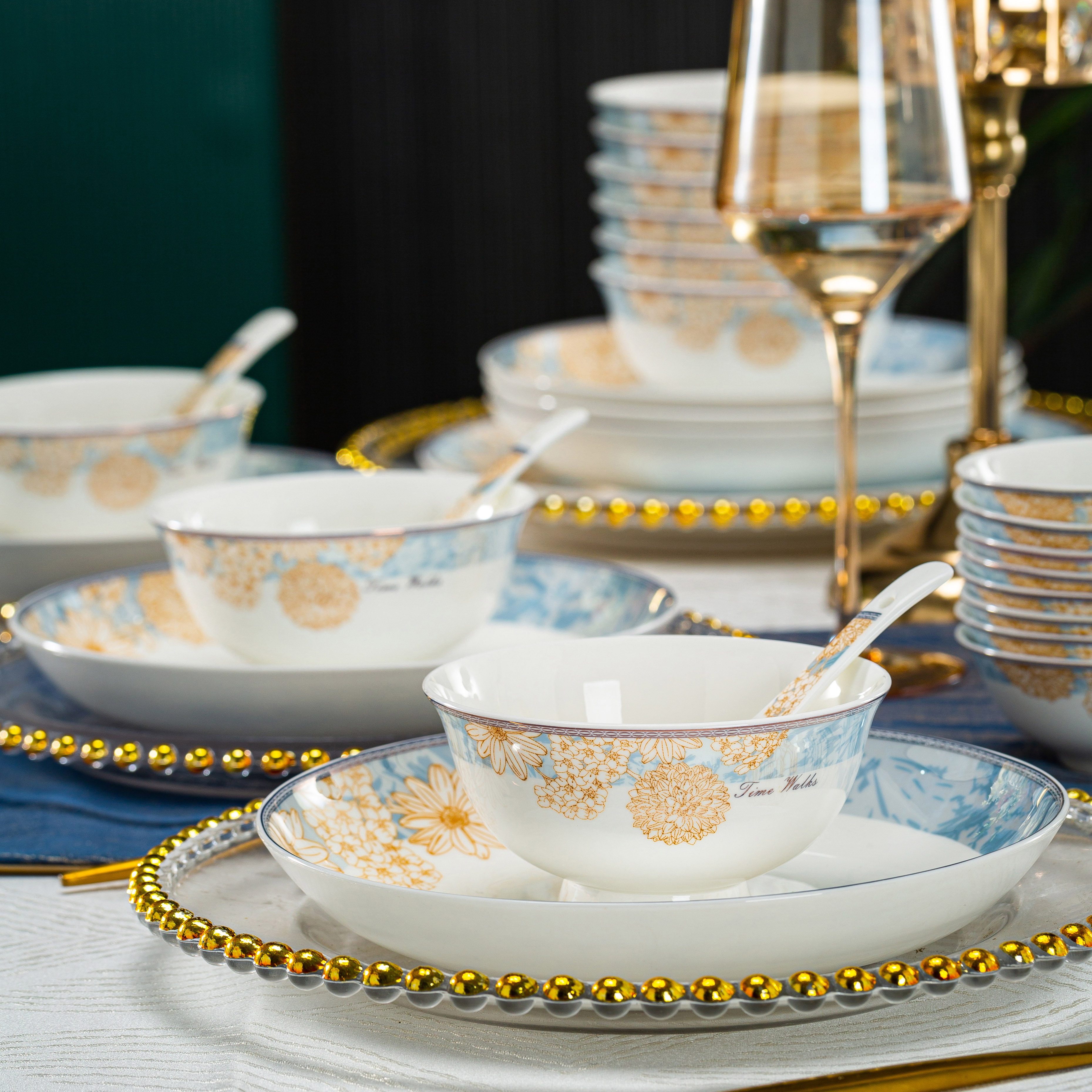 Bowl and dish set home European light luxury 2022 Jingdezhen bone china ceramic housewarming set tableware combination bowls and chopsticks