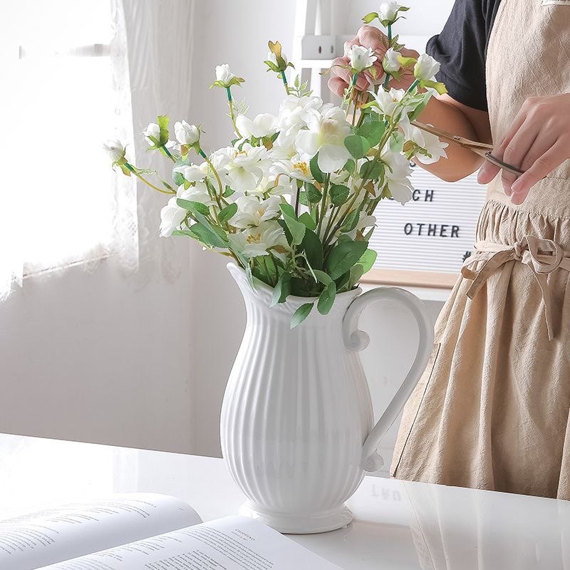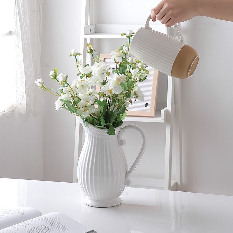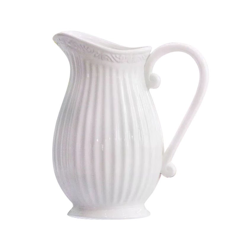 Façal handle vase embossed ceramic milk jug floral European-style living-room table flower arrangement decoration pendulum with wind-Taobao