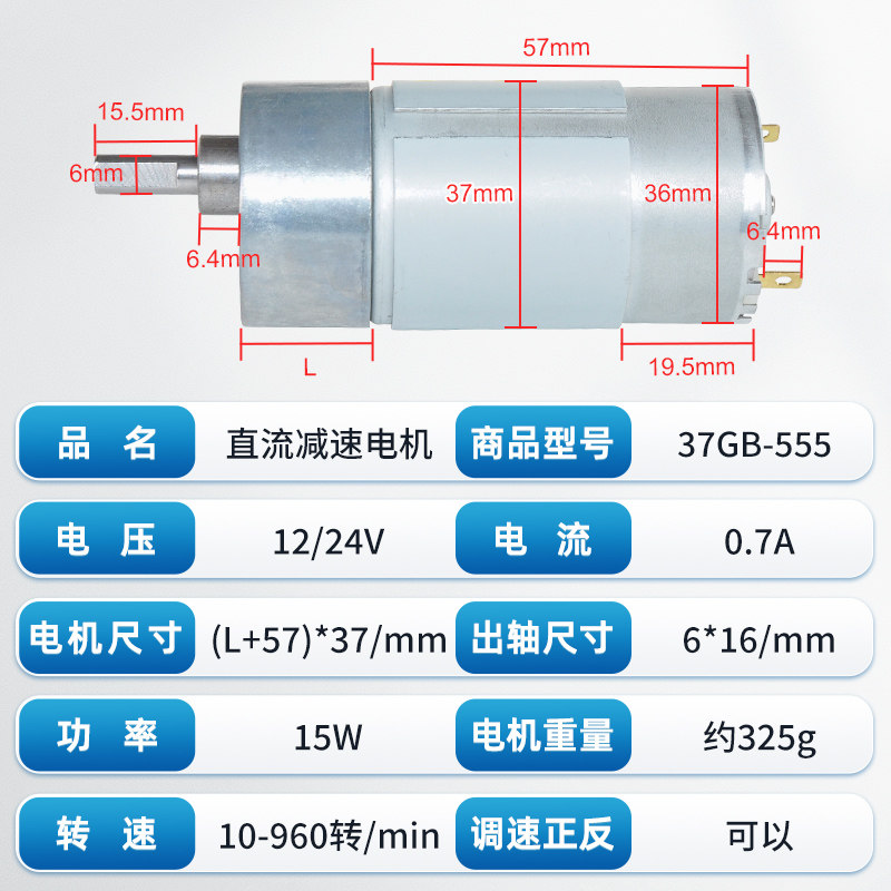 12v24 volt DC speed reduction motor throttling low rev large torque 37GB555 gear micro slow small motor-Taobao