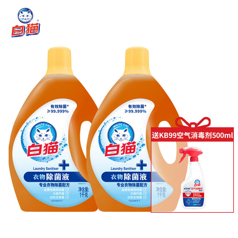White cat clothing other than bacteria fluid 1kg * 2 bottles of sterilized water laundry liquid overvalued family home effective degeria 99 99-Taobao