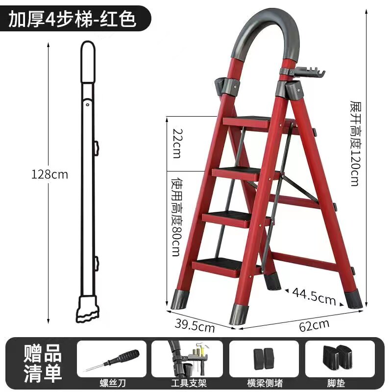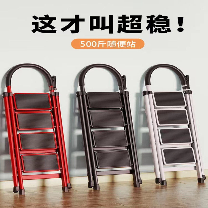 Home ladder folding stretched stainless steel folding stainless steel ladder thickening four-step multi-function five-step portable staircase