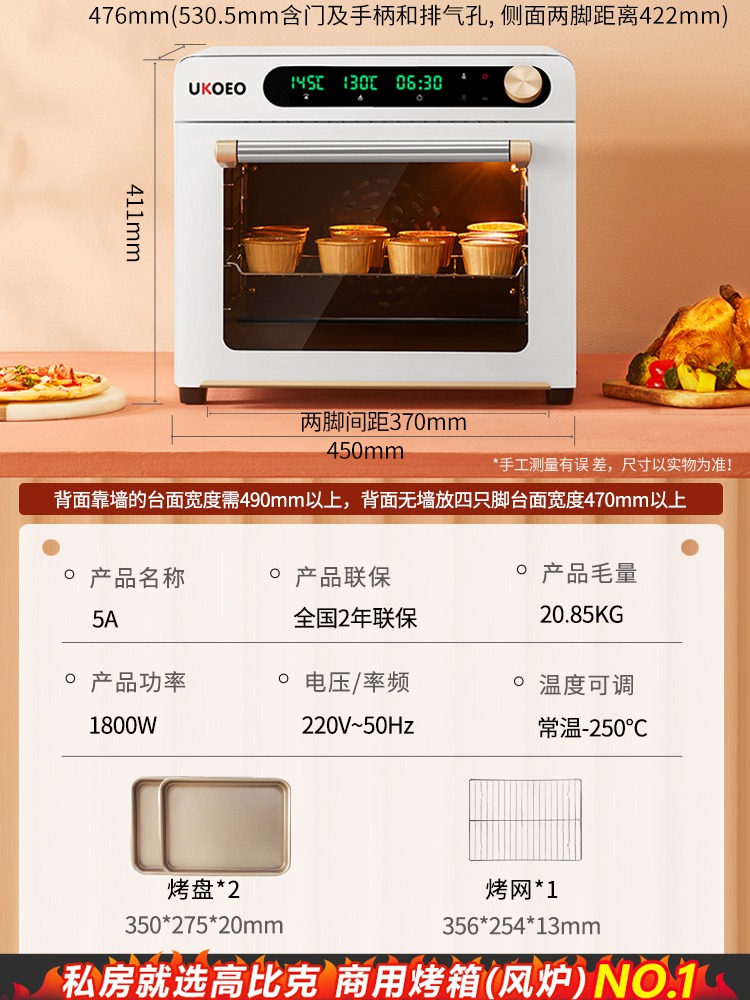 UKOEO High Bike 5A Wind Furnace Flat Stove Two-in-one Home Oven Baking Multifunction Large Capacity Electric Oven-Taobao