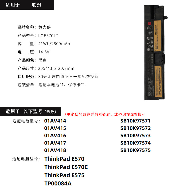 Suitable for Lenovo E570 E570 E570C E575 01AV417 TP00084A TP00084A 01AV4 01AV4