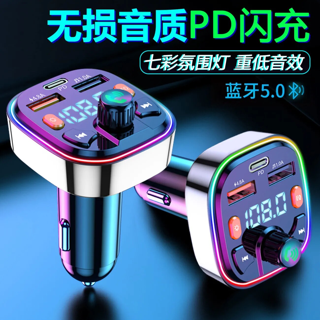 Vehicle Charger 66W Super Fast Charger Cigarette Converter plug Bluetooth Receiver USB Multi - function