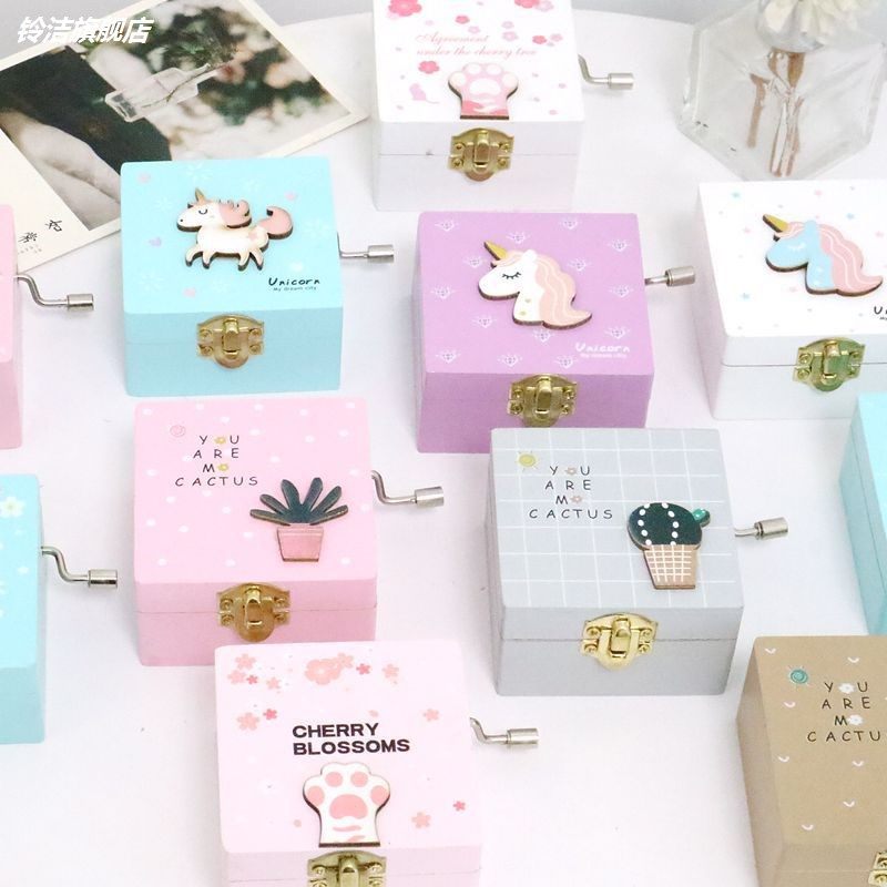 Cartoon Girl Eight - Oct Box Hand Shake Wooden Music Box Student Gifts Creative Gifts Birthday Day Supplies
