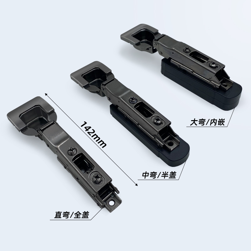 Two-stage force damping motor vehicle hinge (gun black, straight bend) Two-stage force damping motor vehicle hinge (gun black, medium bend) Two-stage force damping motor vehicle hinge (gun black, large bend)
