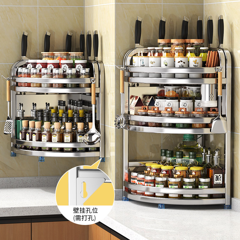 304 stainless steel kitchen multifunctional shelf conditioner conditioner wall hanging triangle reception rack 1366