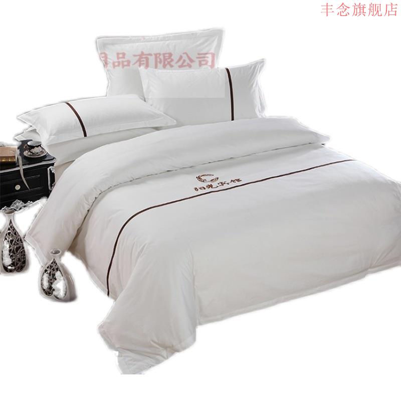 Hotel bedding pure cotton white bed sheet quilt cover cotton homestay five-star hotel four-piece set solid color