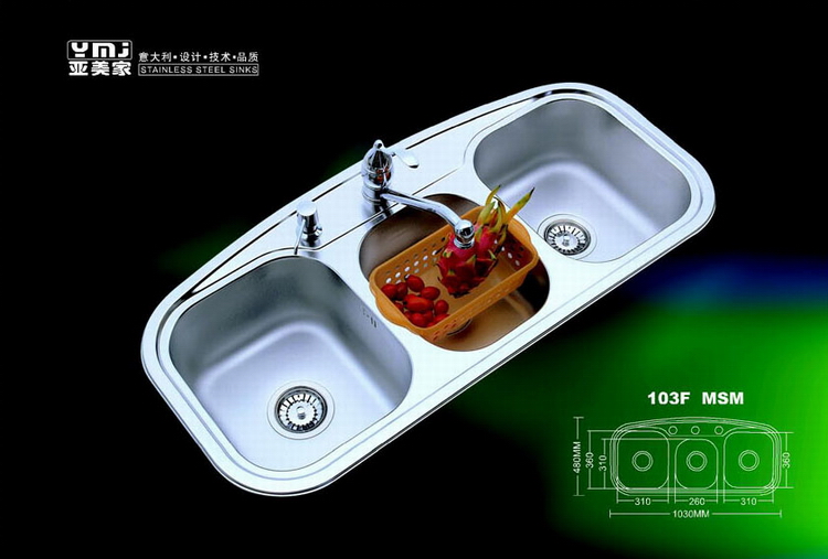 Yameijia SUS304 stainless steel three-slot OEM three-basin oversized sink lengthened pool brushed vegetable sink