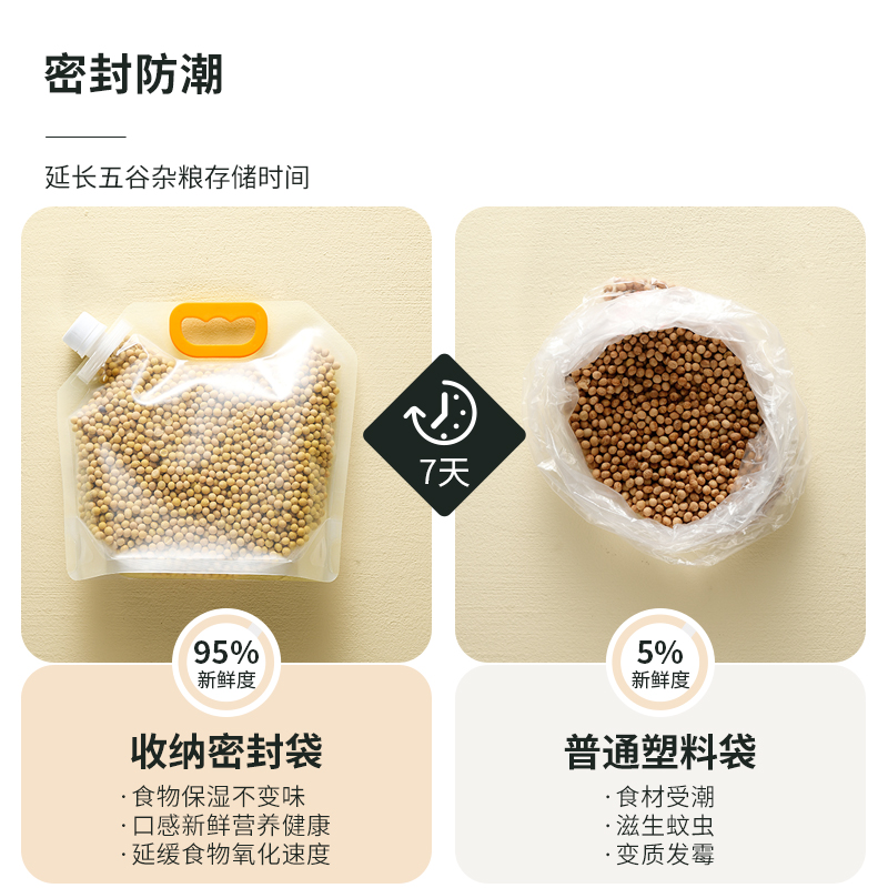 Five cereals Cereals Containing sealed bag Food grade moisture-proof and anti-bug kitchen fridge refreshing box rice barrel rice bag storage tank-Taobao