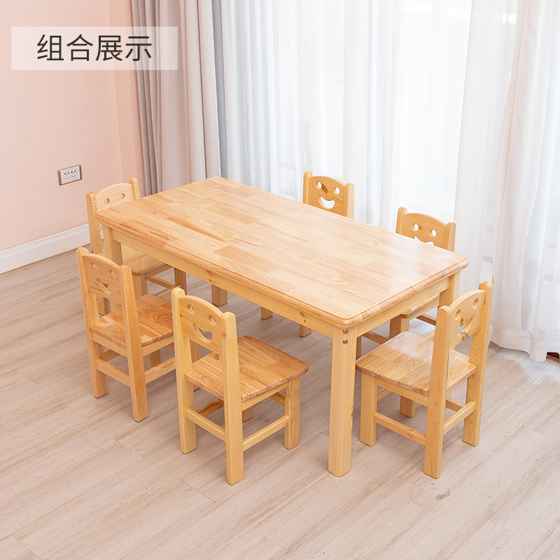Kindergarten children solid wood table and chairs suit study desk dining table painting table rectangular pine wood oak table and chairs-Taobao