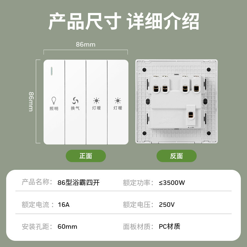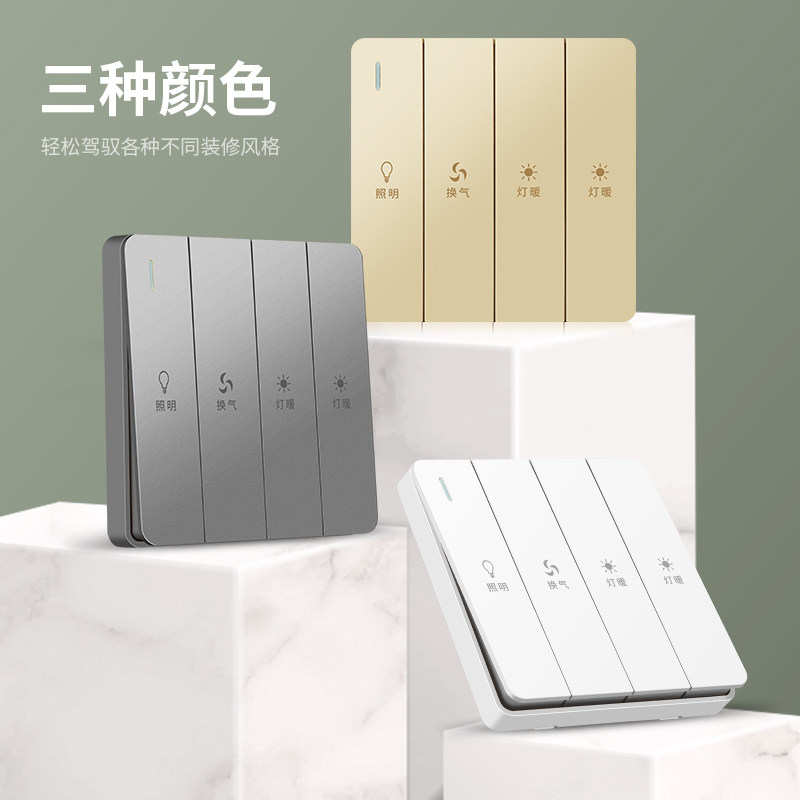 Type 86 bath overpower switch toilet warm air blower four-switch control panel double motor bathroom four all-in-one warmer-Taobao