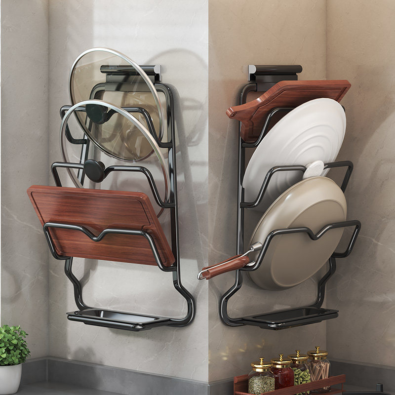 Pot cover wall mounted type punch kitchen shelf household multi-layer collection frame deck board cutting board shelf