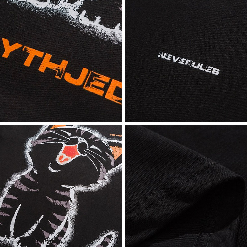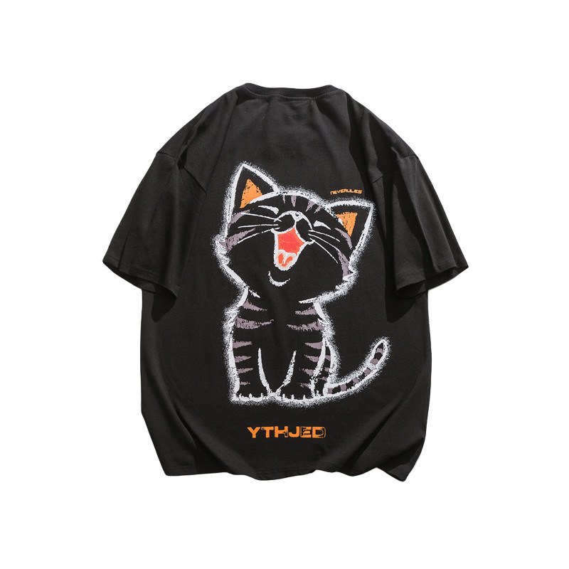 Come and go for business meow) FURTHER) The Small Crowd Design Cartoon Loose Ins pure cotton) T-shirts for men and women-Taobao