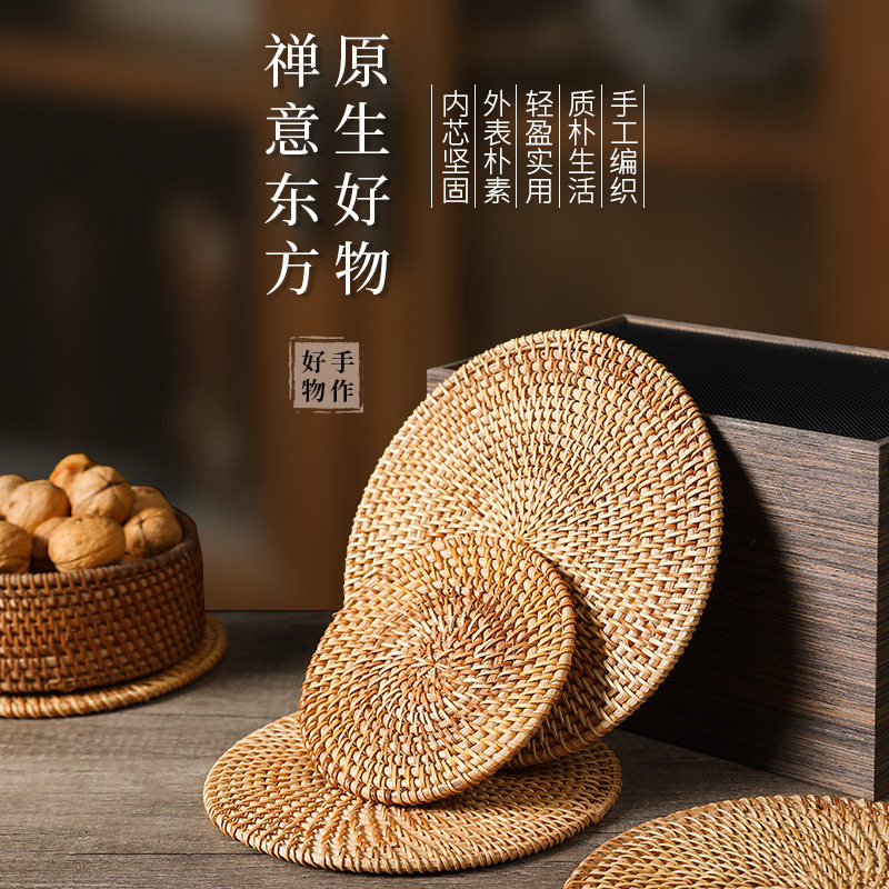 Rattan Heat Insulation Mat Home Burn-Proof Pan Mat Bowl Mat High Temperature Resistant Dining Table Cushion Heat Resistant Plate Mat Cup Cushion Teapot-Taobao