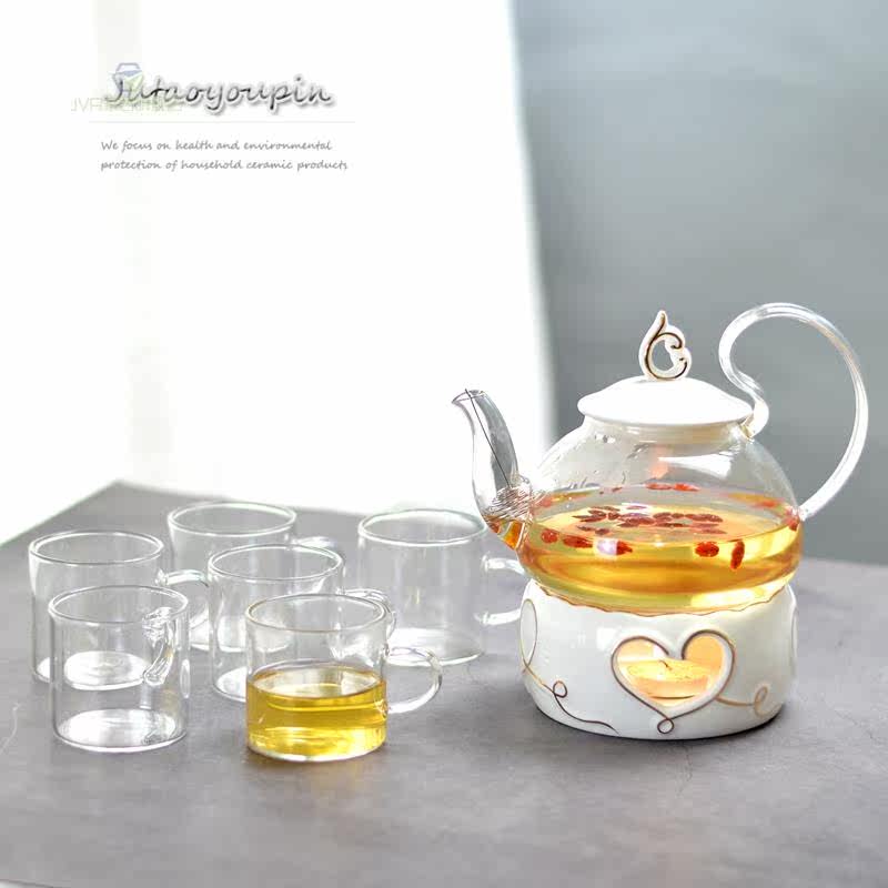 600ML high pot heart furnace 6 bone porcelain cup plate Send cup frame pumpkin pot pot heart furnace 4 bone porcelain cup plate Send cup frame 600ML high pitch heart-type stove seat for 10 wax