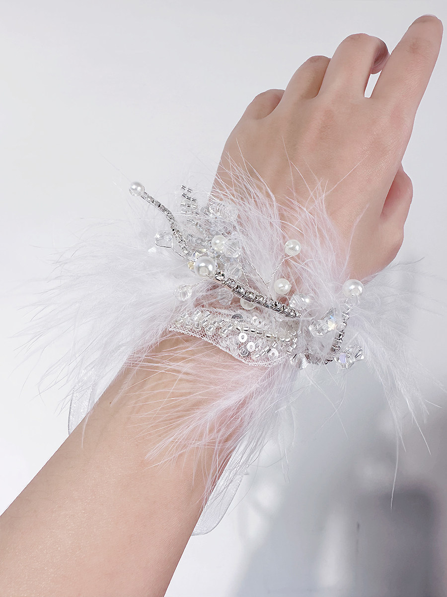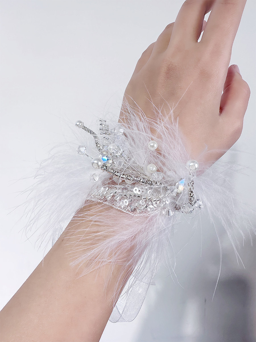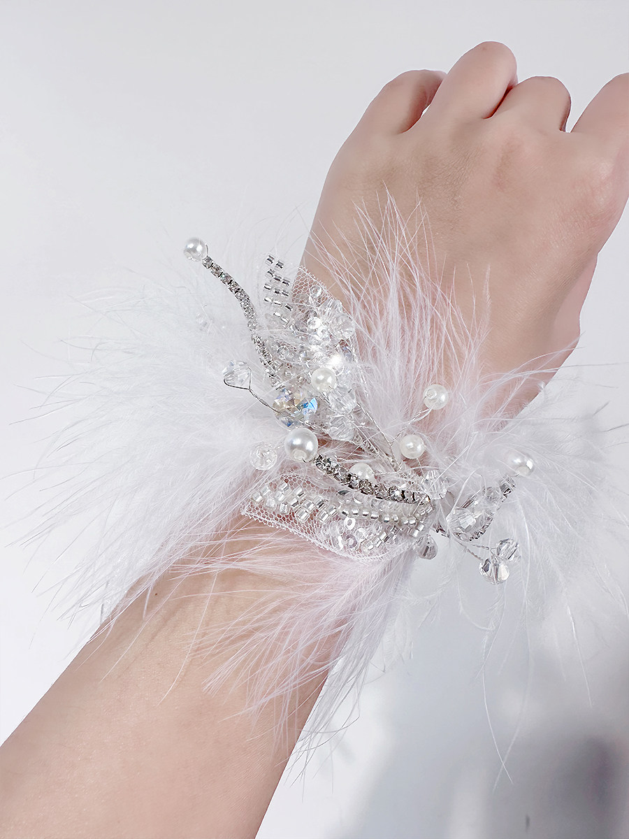 Original Advanced Sensation Super Fairy Bride Wedding Feather Wrist Flowers Female Bridesmaid's Sister Group Walking Show Exquisite Bracelet Chair-Taobao