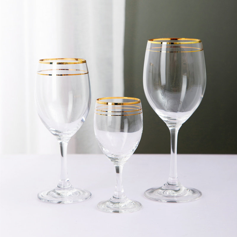 High - grade gold - edge light luxury red wine cup suit household two or two high - foot glass Hotel crystal wine glass