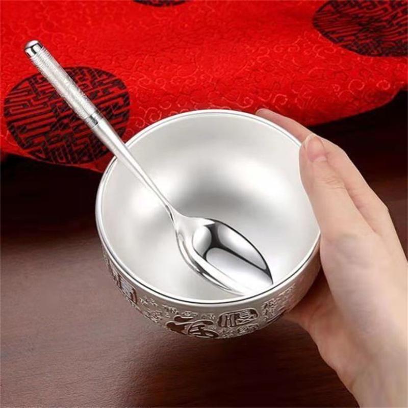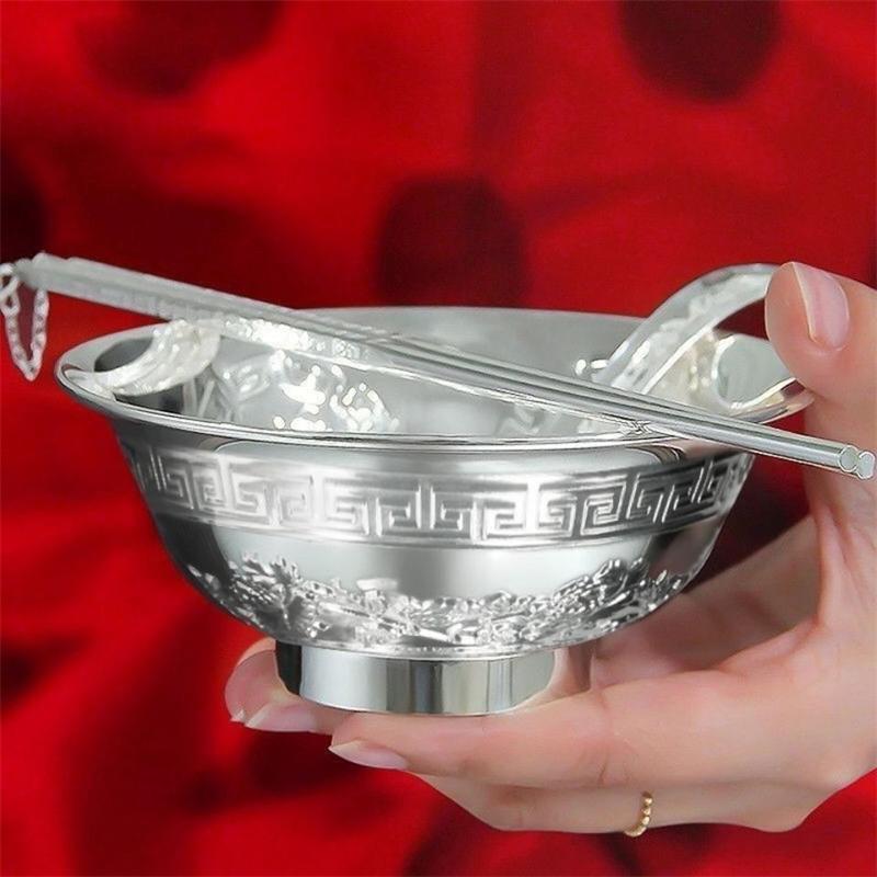 Today Seconds Kill Silver Bowl 9999a pure silver cooked silver chopsticks Three sets silver tableware silver Chopsticks Foot Silver Bowl Suit-Taobao
