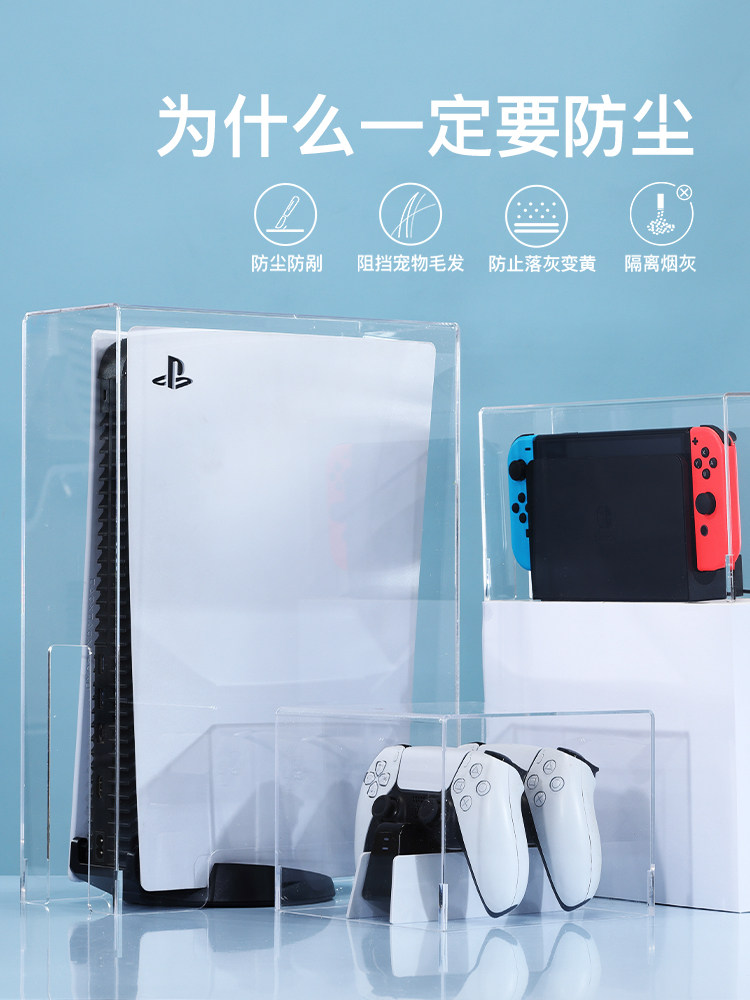 PS5pro dust cover slim acrylic suitable for old Sony heat dissipation transparent handle cover game peripheral accessories protective case cover host cover storage horizontal dust cover integrated case fan