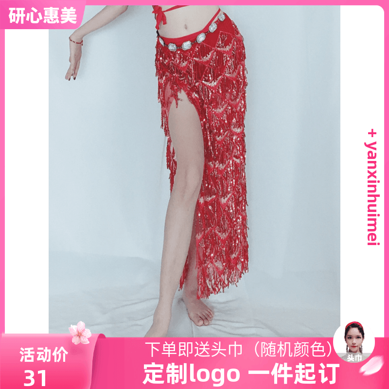 Research center Huey Mei's new belly dance Under-dress half-body dress Hip Towel down with 2024 Spring practice Costume Women Oriental Dance Bag-Taobao