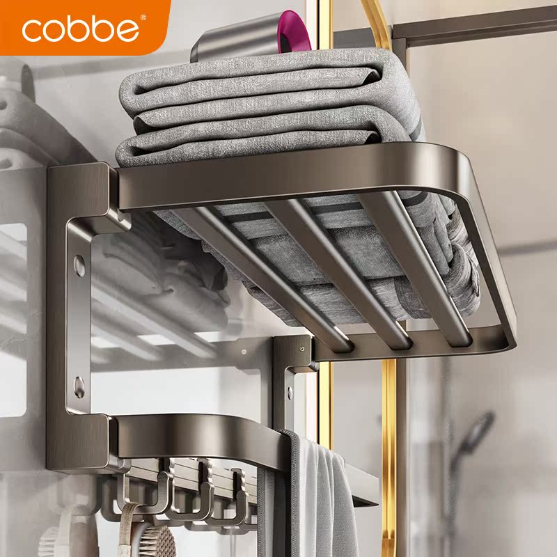 Cabbé Space Aluminum Hair Towel Rack Free From Punching Gun Grey Bathroom Shelve Toilet Bath Towel Rack Bathroom 875-Taobao