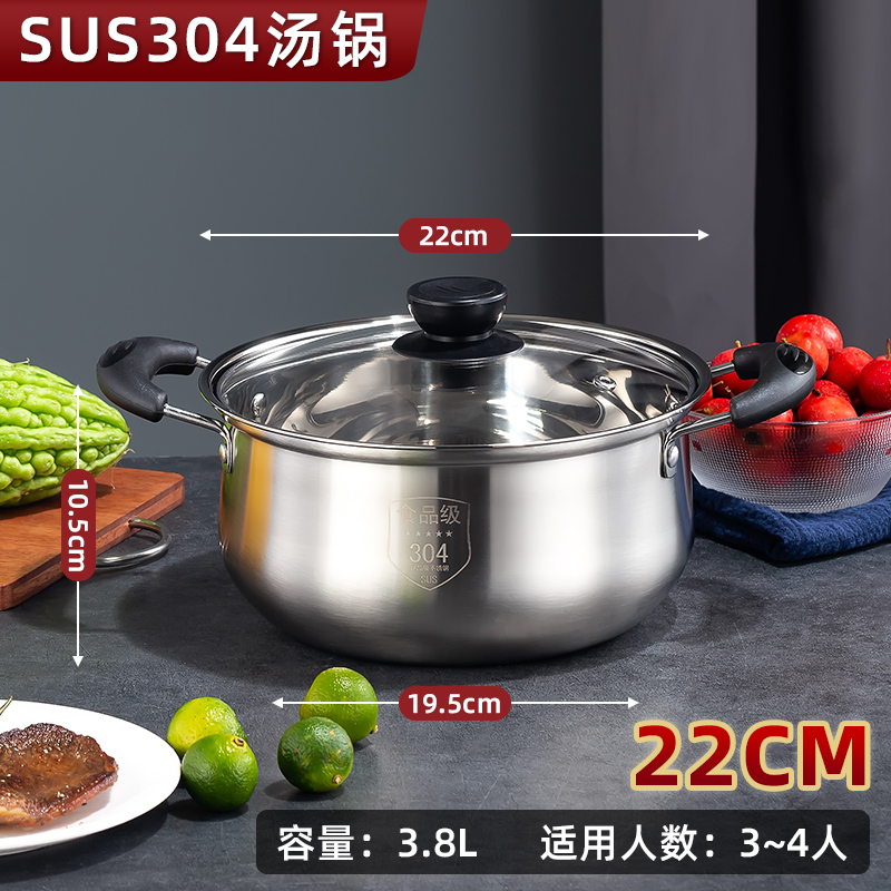 Soup pot 304 stainless steel thickened double ear domestic cooking foam noodles small pot steam boiler special gas induction stove cooking pot-Taobao