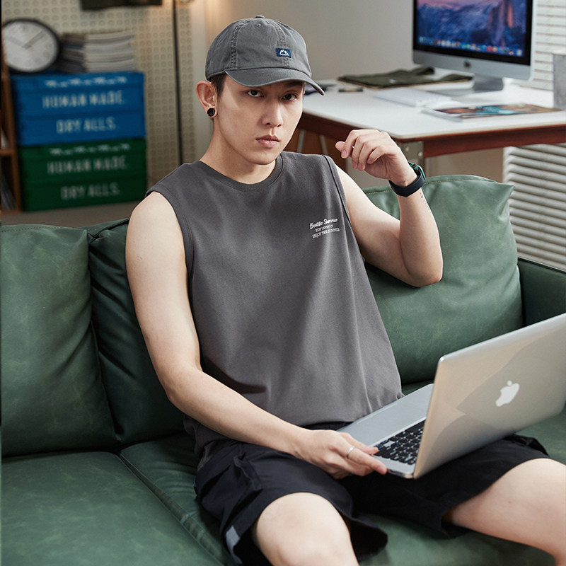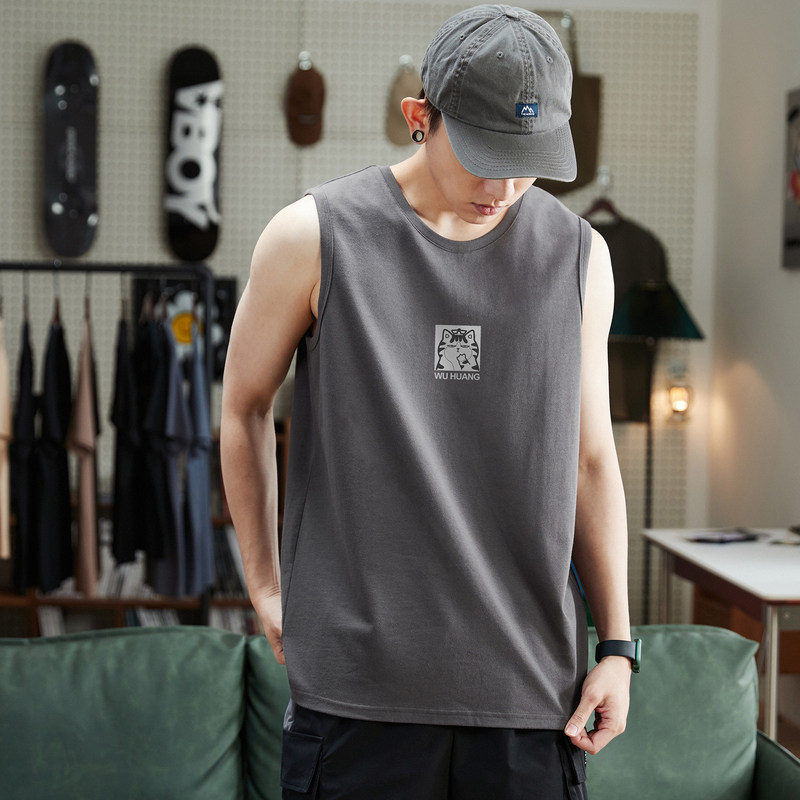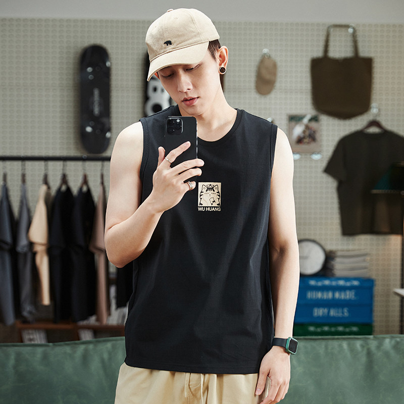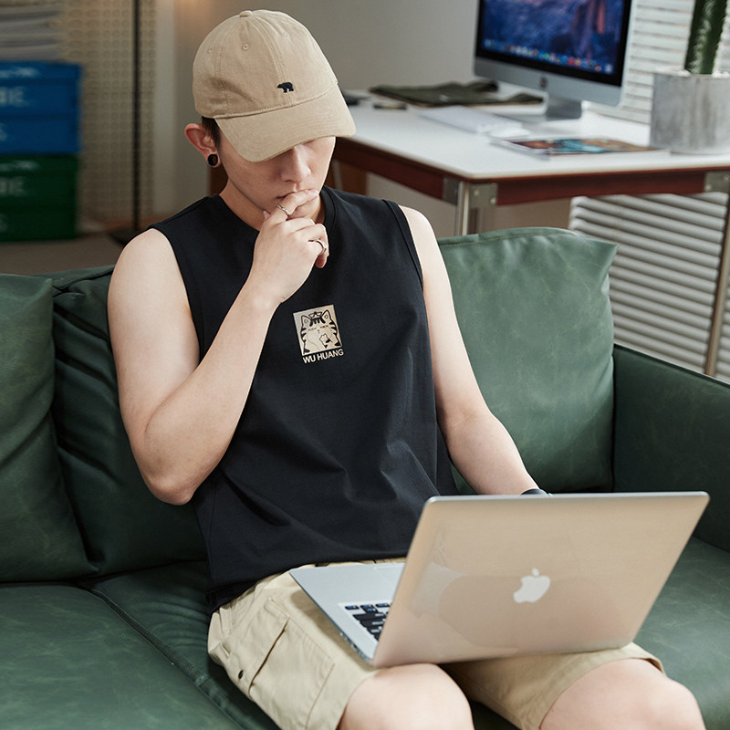 My Real Cat Joint] Tanglion 2023 Summer New Male Vest Sweatshirt Sleeveless T-shirt Bottom Pure Cotton Round Collar Blouse-Taobao